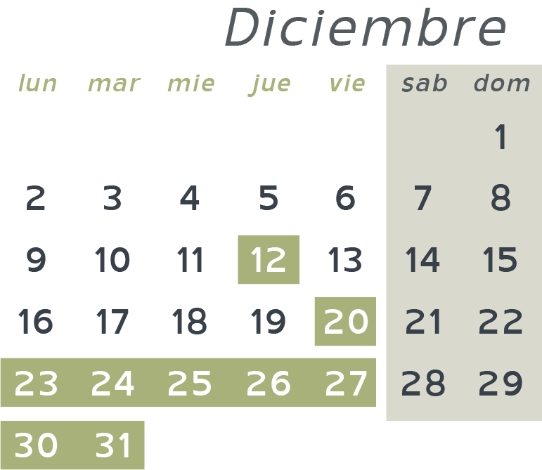 Del Lunes 23 de diciembre de 2024 al martes 7 de enero de 2025